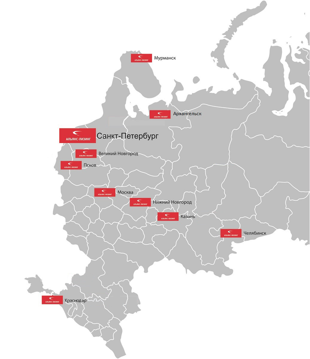 Альянс-Лизинг работает почти на всей европейской части Российской Федерации. Наша региональная сеть насчитывает 10 офисов.
